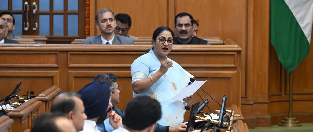 Delhi Chief Minister Rekha Gupta presents the 2026-27 Budget during the Budget Session of Delhi Assembly in New Delhi on March 24, 2026